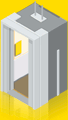 In diesem Fall sitzt das Notrufgerät hinter der Kabinenwand. Es wird lediglich ein neuer Alarmtaster mit integrierter gelb/grün Anzeige (für Gehörlose) installiert. Die Notstromversorgung der Aufzugssteuerung kann für das Notrufgerät mitbenutzt werden.